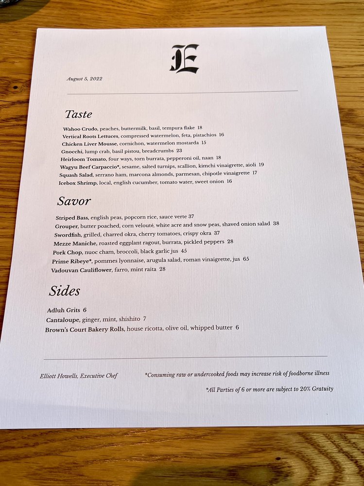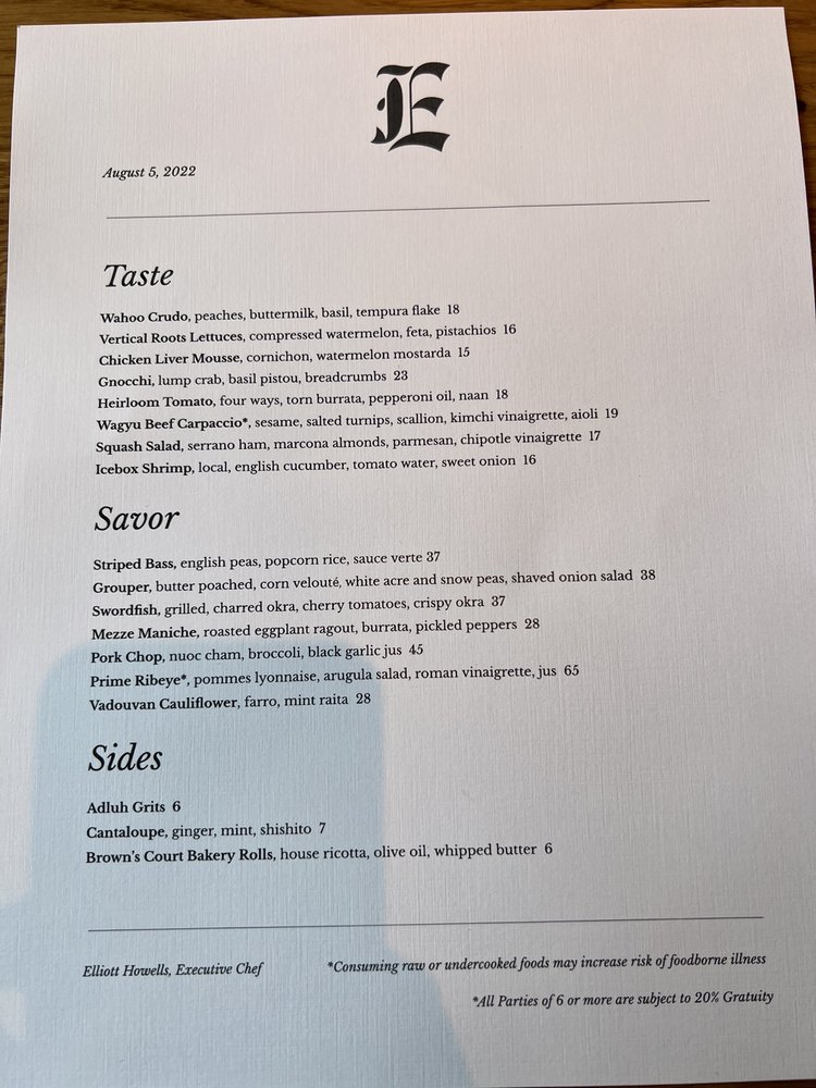Savor dishes like Butter Poached Grouper with sunchokes and preserved lemon gremolata or the Moqueca De Peixe with a mix of seafood in a flavorful tomato-coconut broth. For a taste sensation, try the Chicken Liver Mousse with blackberry mostarda or the Ghost Grow Greens with green garlic tahini dressing.